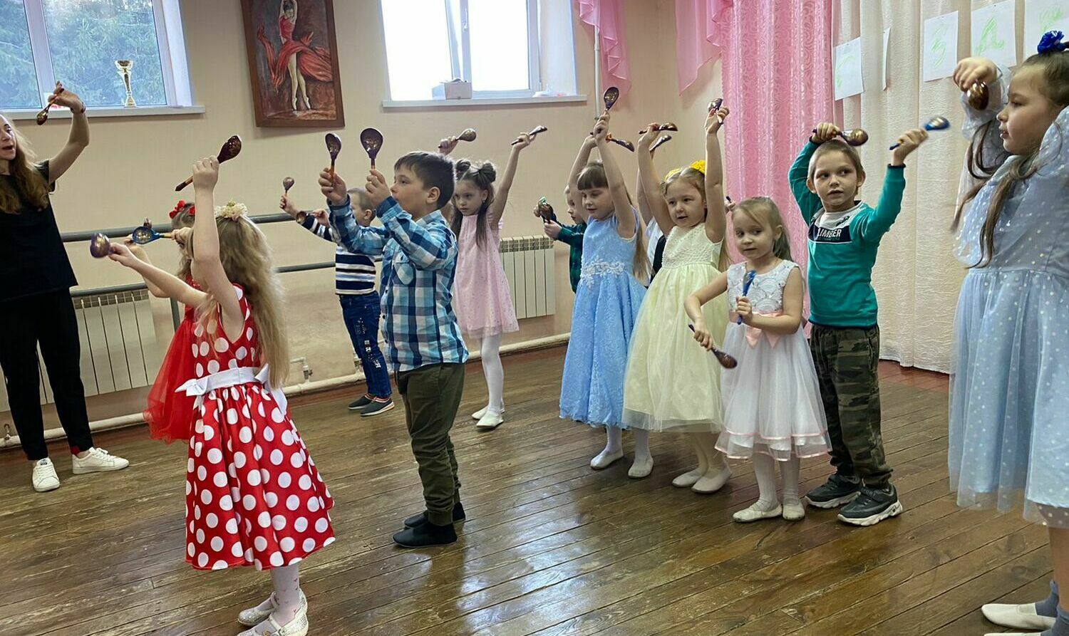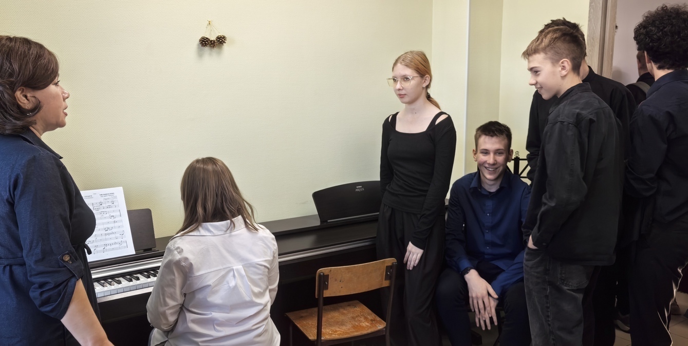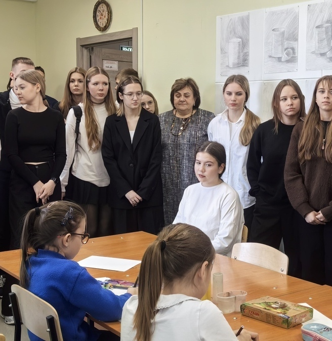 Студенты НОККиИ, будущие преподаватели проходят практику, набираются опыта с нашими творческими детьми.